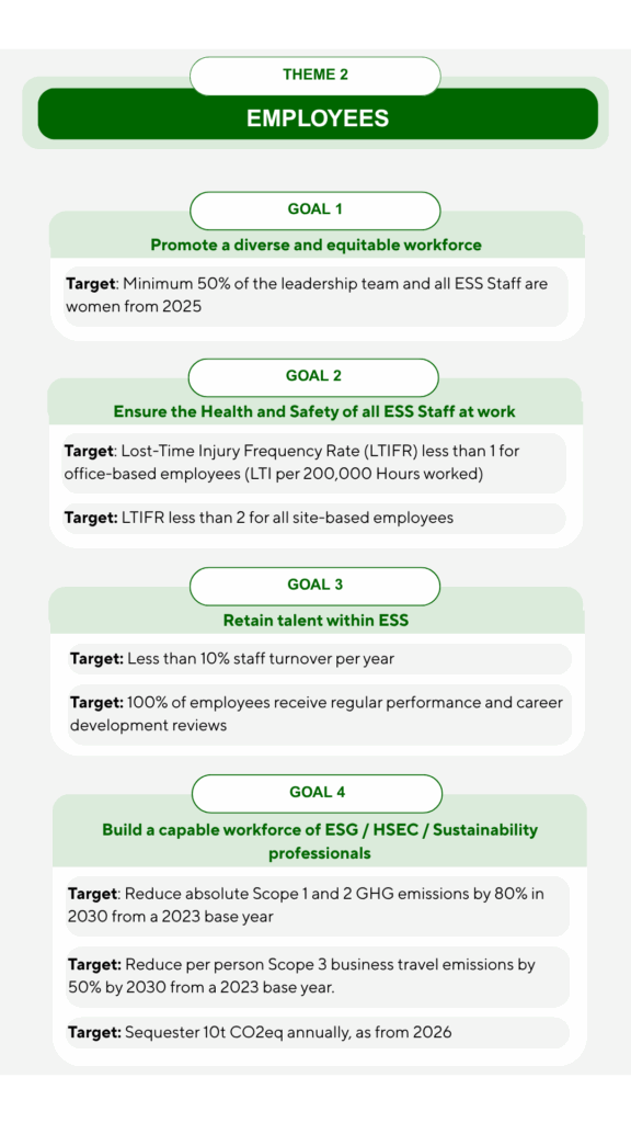 We have developed an ESG and Sustainability Strategy that provides strategic direction on sustainability at ESS, and sets out how we contribute to addressing some of the most urgent and important challenges globally in line with the Sustainable Development Goals (SDGs).