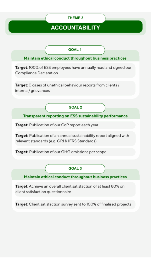 These goals guide our internal sustainability efforts, while the full SDG framework continues to inform the services we provide and the impact we seek to deliver externally.